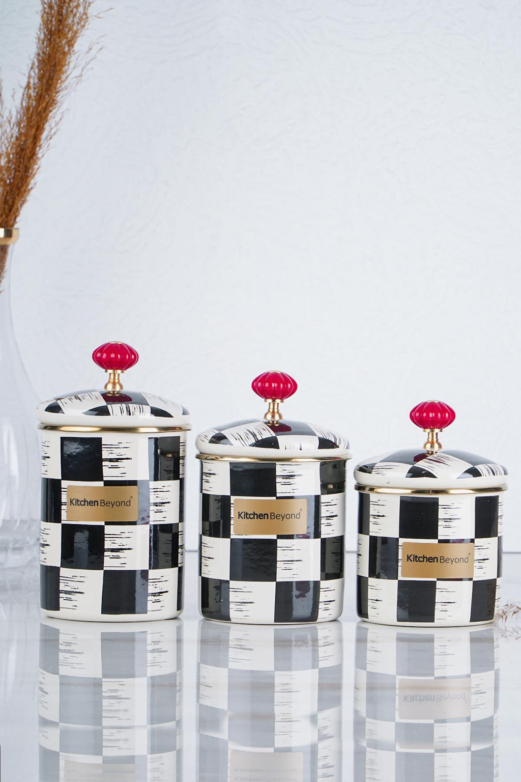 ACAR QUALITA KING Lot de 3 bocaux en émail motif noir et blanc