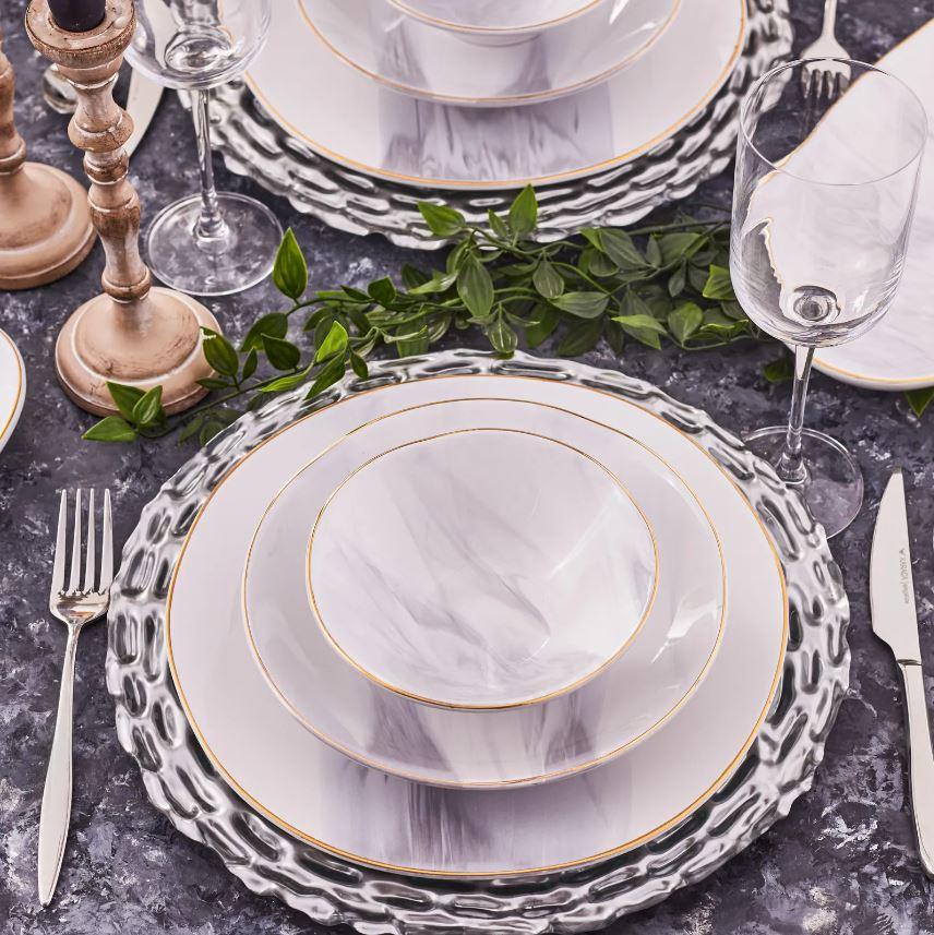 KARACA RIA GREY Service de table 39 pièces 12 personnes