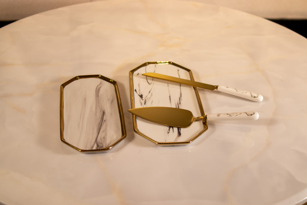 TREND HOME Set de couverts à dessert : couteau + spatule blanc/doré