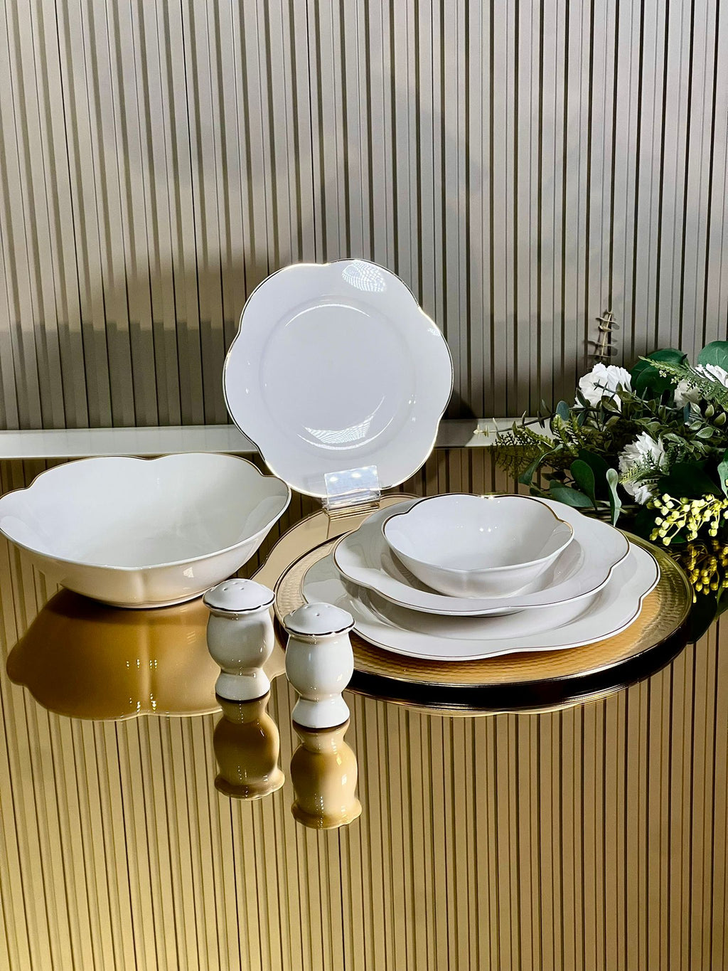 ZELLERFELD ROSA Blanc avec liseré doré Service de table 27 pièces 6 personnes