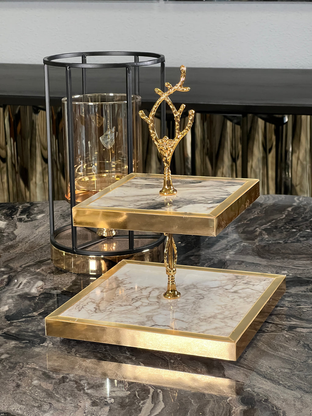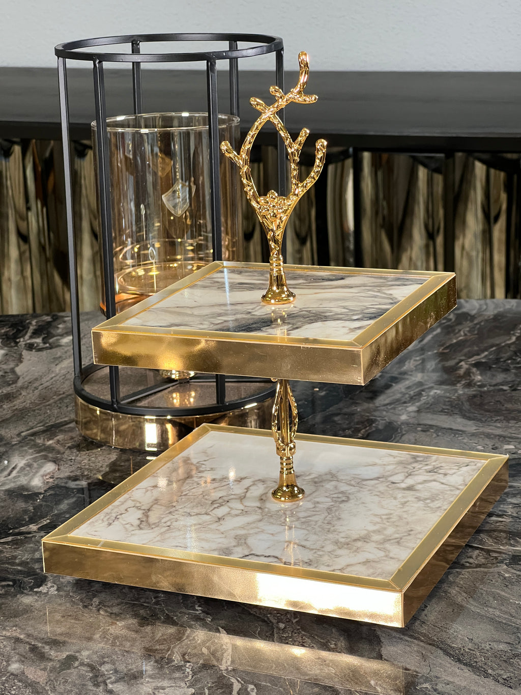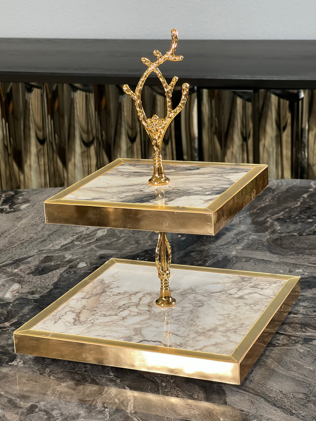 ZEYVE Présentoir à gâteau 2 étages motif marbré blanc doré