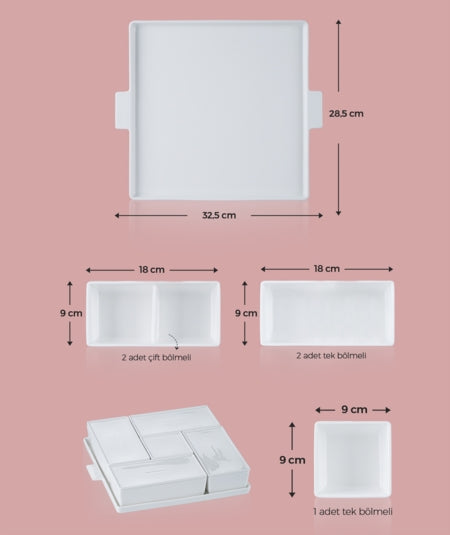 - 2 Adet Tek Bölmeli Kase : 18 cm x 9 cm