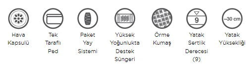 Ped için kullanılan yüksek dansitedeki sünger ile omurga desteklenmektedir. Sünger yüksekliğinin artması konforu daha da arttırmaktadır. Kısmi olarak yaylardan ayrılmış ped tabakası kalın süngerinden dolayı daha yumuşak bir zemin hissi verir. Yatağınız size hem yayın dayanıklılığını, hem kalın sünger tabakasının konforunu sunar.