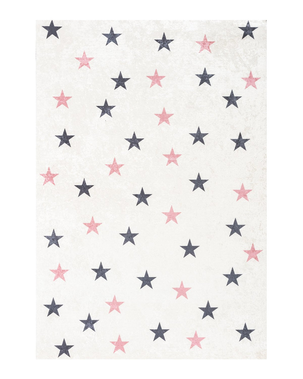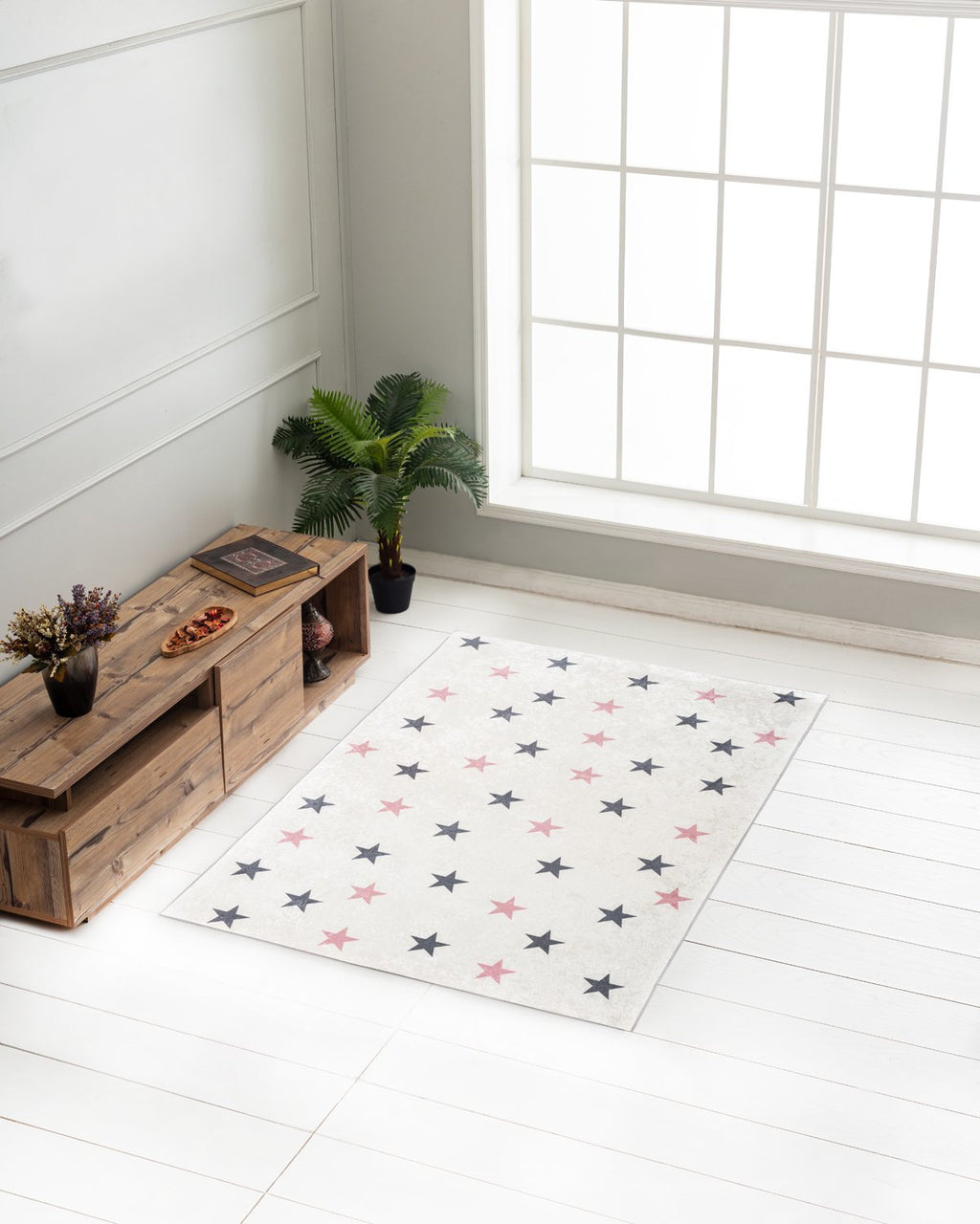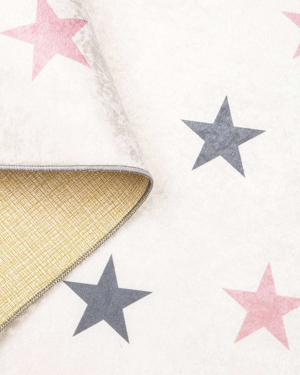 BELLA TAPIS YILDIZ Gri Pembe Antibakteriyel Yıkanabilir Kaymaz Taban Halı