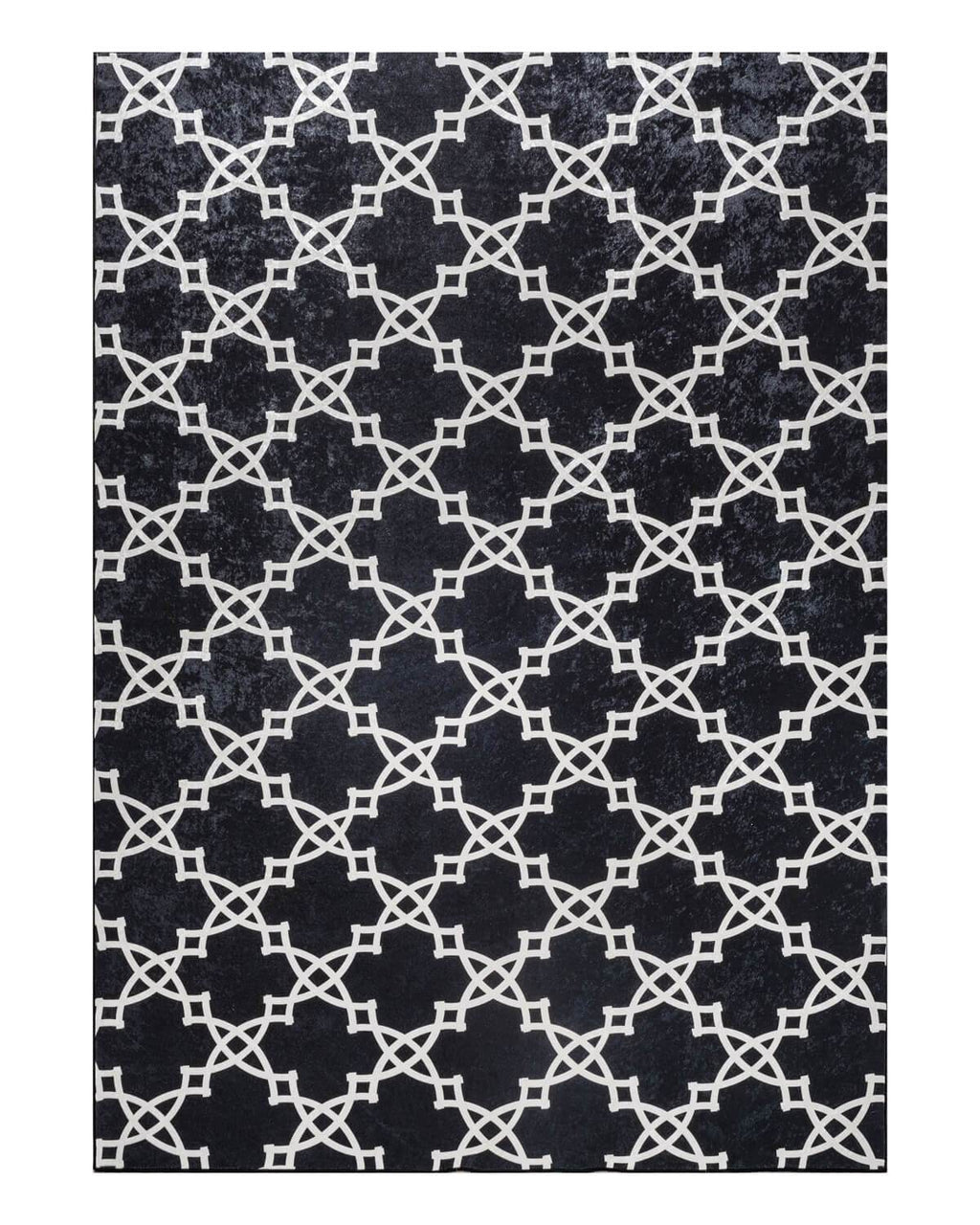 BELLA TAPIS ZINCIR Siyaha Beyaz Antibakteriyel Yıkanabilir Kaymaz Taban Halı