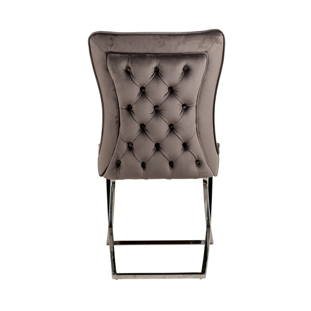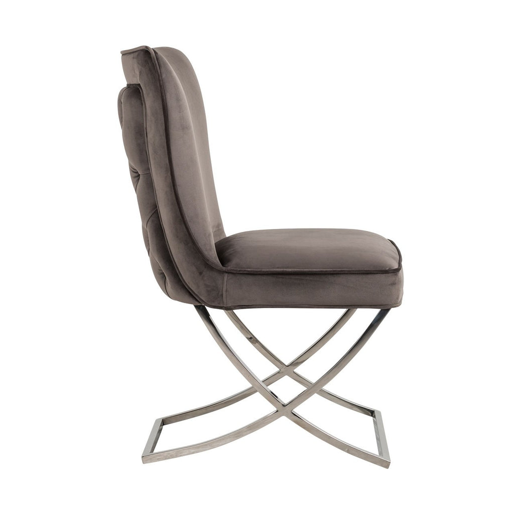 ZEN yemek odası salon sandalyesi - Koyu gri kumaş kadife - Gümüş metal ayak