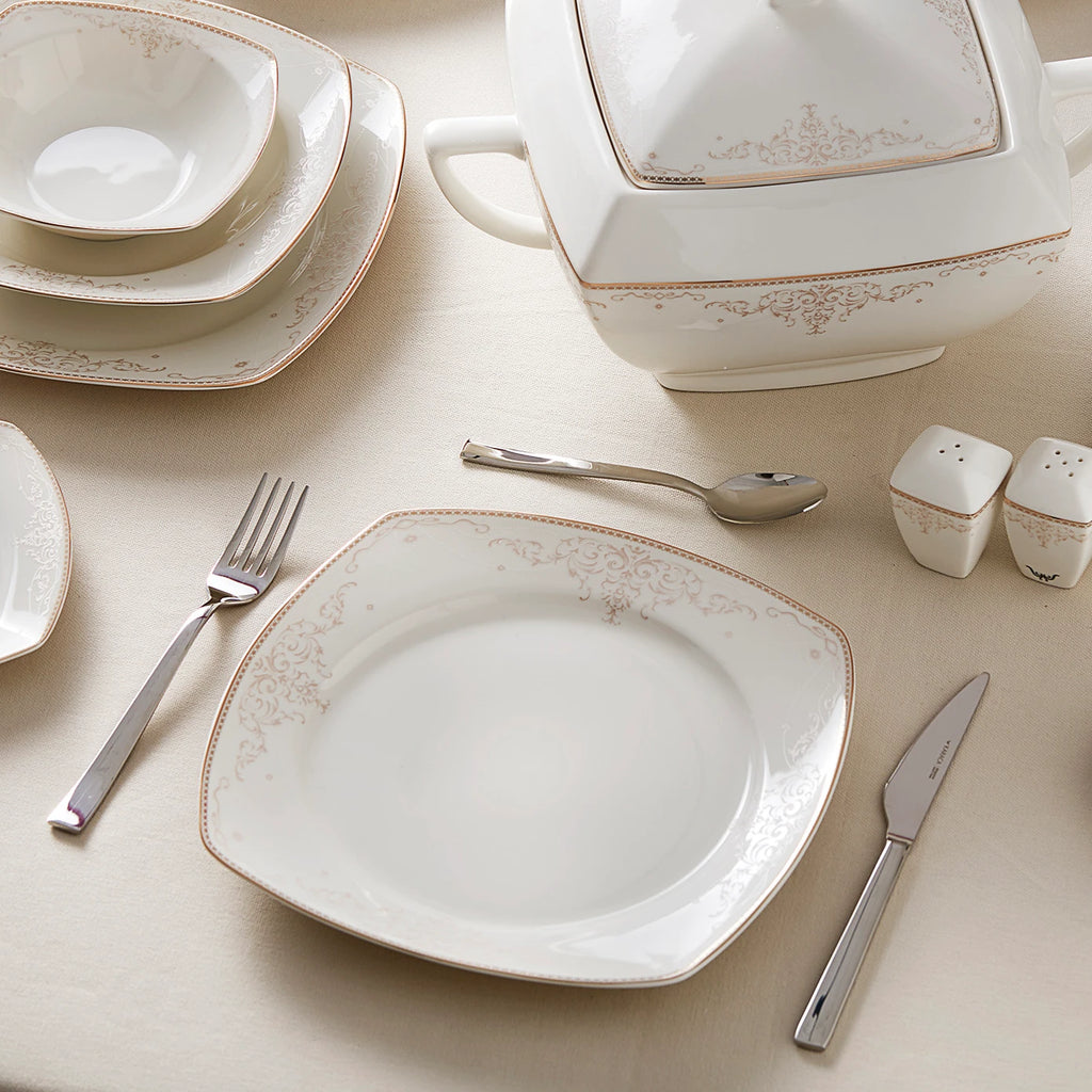 KARACA ADELİNA 6925 GOLD 60 Parça 12 kişilik kare yemek takımı