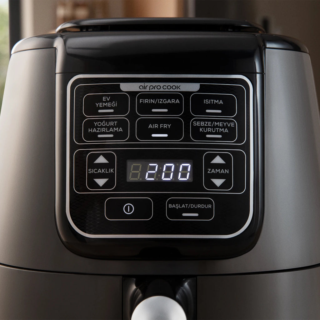 Her aşamada sizi konuşarak bilgilendiren Air Pro Cook, 4 litre geniş hacmiyle tabak tabak lezzetleri sizinle buluşturur. Circulation Air Tech’in yukarıdan aşağıya hareket eden sıcak hava akımı teknolojisi ile yemeğinizin her noktasını eşit kıvamda pişirir. Yemeklerinizi yeniden ısıtmak istediğinizdeyse ısıtma özelliğini kullanabilirsiniz.