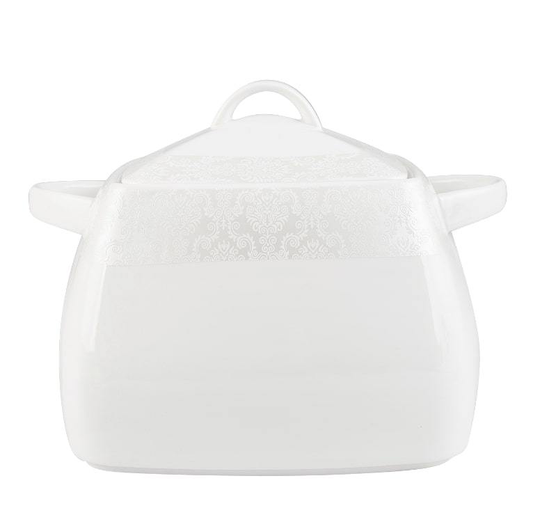 Karaca Fine Bone Bride yemek takımı'nın dantel desenlerine hayran kalacaksınız. Göz yormayan sade tasarımı ile her zevke hitap ediyor. Yemek masanızın daha ihtişamlı görünmesini isterseniz, beyaz bir örtü üzerine dantel desenli Karaca bardak takımını ve ışıldayan Karaca çatal kaşık bıçak takımlarıyla süsleyebilirseniz.