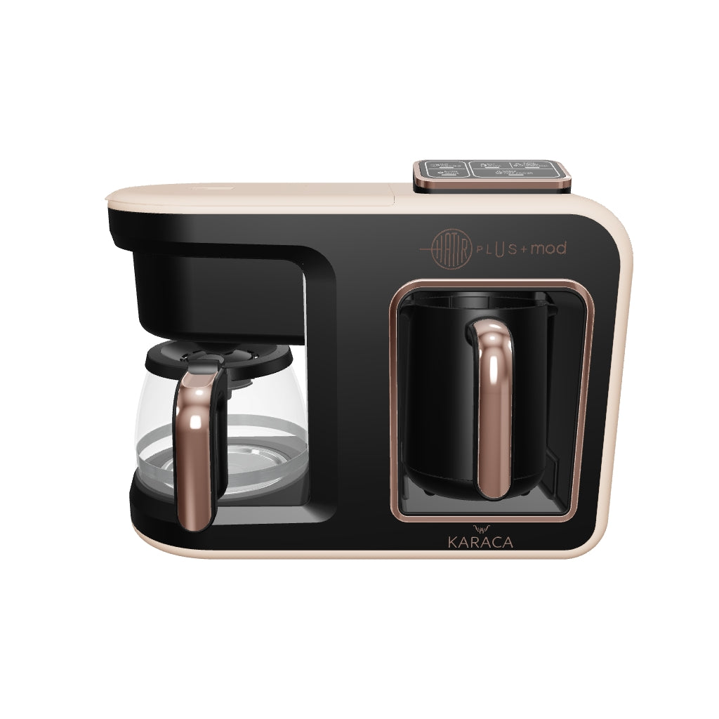 Karaca Hatır Plus Mod ile modunuza göre filtre kahve, çay, süt ısıtma, sütlü içecek hazırlama ve közde Türk Kahvesi yapabilirsiniz.