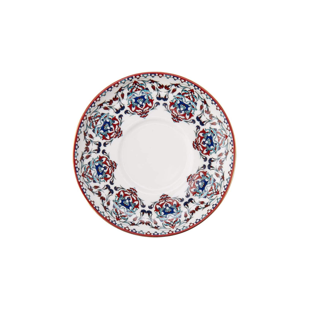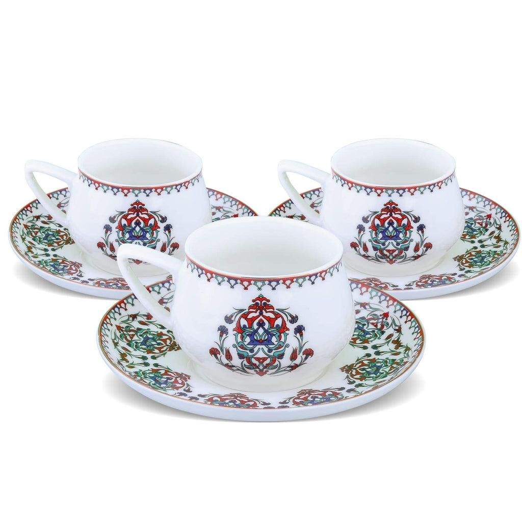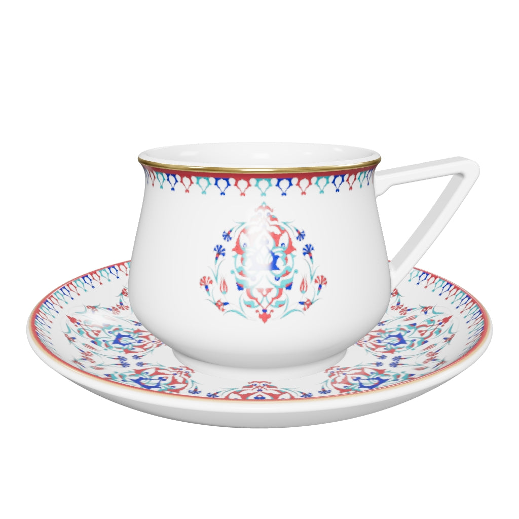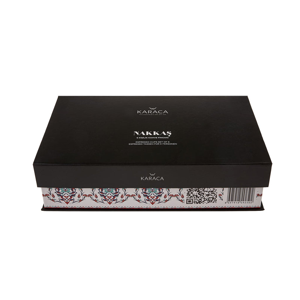Karaca Nakkaş 6lı kahve fincan seti ile kahve saatlerinize asalet katın... Mavi, kırmızı ve yeşil tonlarında ince ve küçük nakışlar ile tasarlanmıştır. Özel günlerde veya nostaljik bir ortamda kahve keyfi yapmak isterseniz, bu özel fincan takımını kahve servisinde kullanabilirsiniz. Estetik olarak enlemesine yuvarlak şekli olan kahve fincanları, üçgen şekilli tutma kulpları ile tamamlanmıştır. Günün yorgunluğunu atmak ya da sohbetlerinizi tatlandırmak için kahvenizi yudumlarken, fincan takımının renk ve desenleri ile kendinizi bambaşka bir ortamda hissedebilirsiniz.