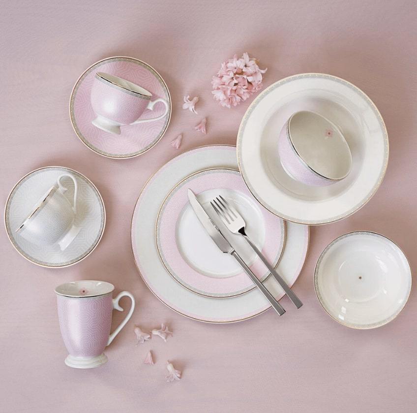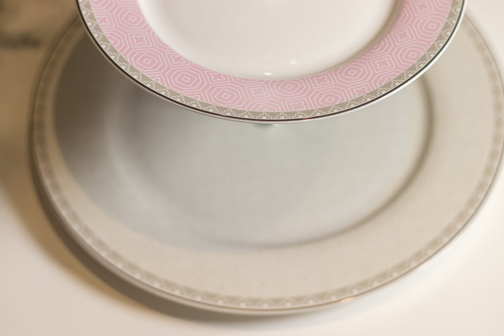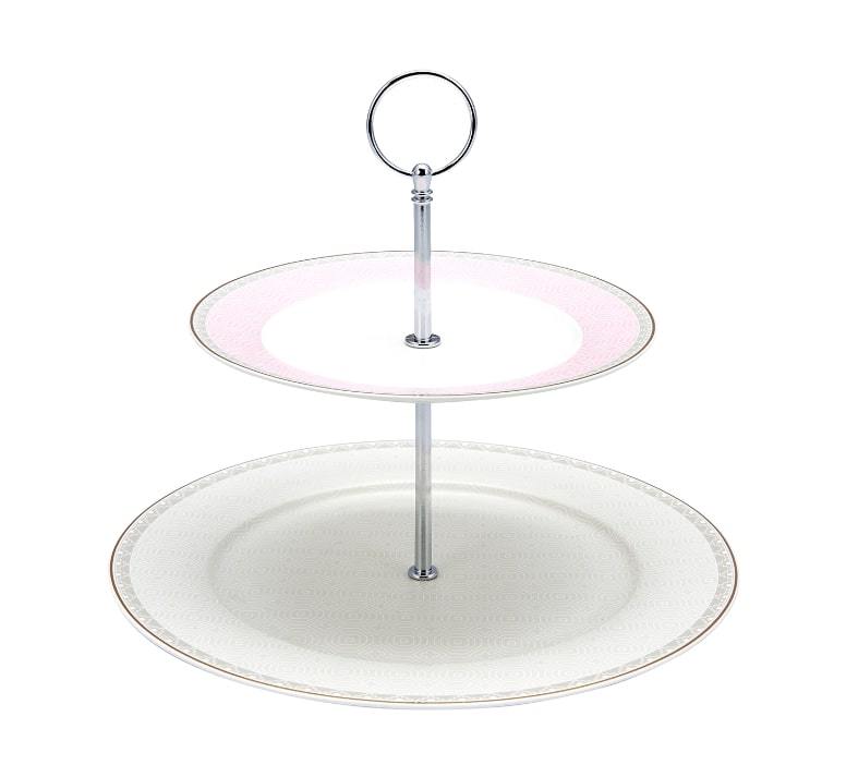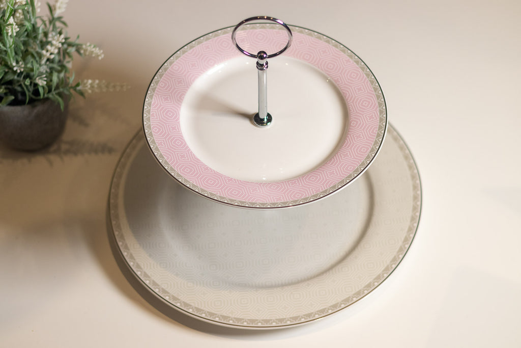 Cift katlı, beyaz ve açık pembe desenli ROMEO kurabiyelikle tatlılarınızı çok şık bir sunumla sunabilirsiniz.