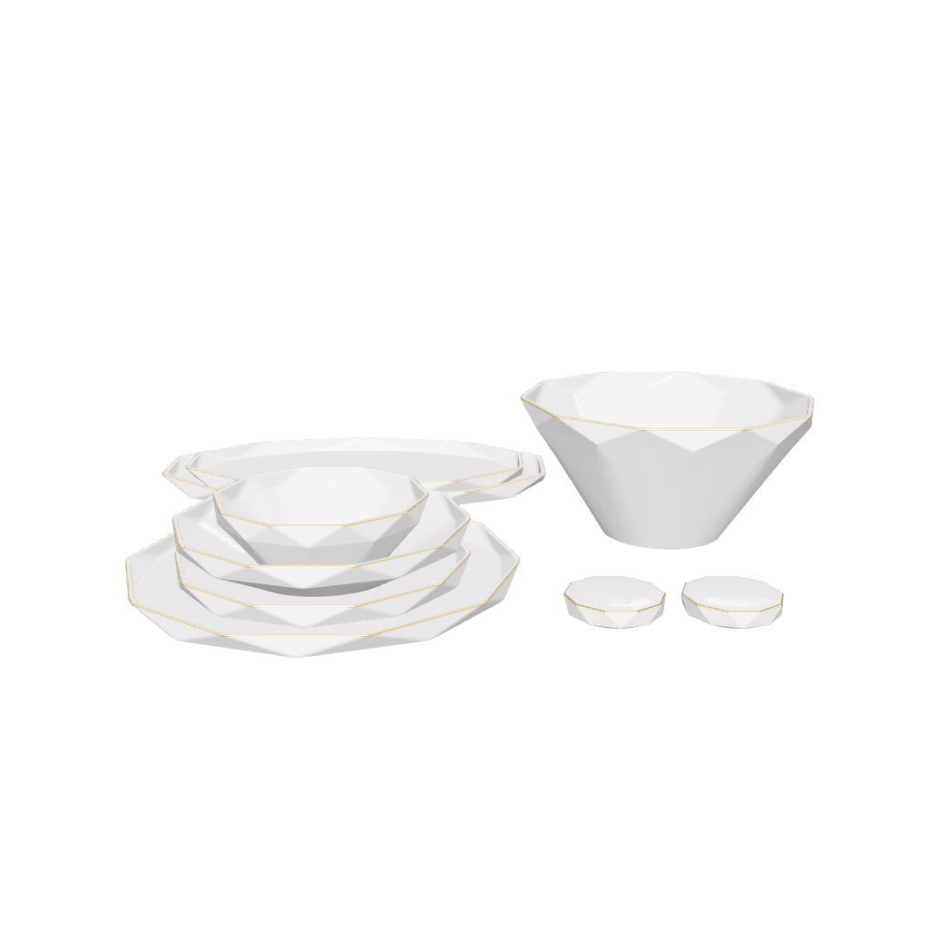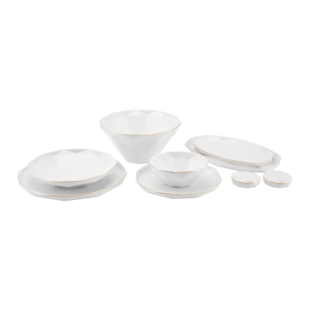 Sofranızda davet şıklığına hazır mısınız ? Karaca Streamline Elmas 57 parça 12 kişililk yemek takımı, bembeyaz rengi ve altın ışıltılarıyla asil ve zengin bir görünüme sahip. İçeriğinde bulunan 12 kişilik servis tabağı, yemek tabağı, pasta tabağı ve çorba kasesinin yanı sıra masa ortasında kullanabileceğiniz küçük ve büyük kayık tabaklar, baharat seti ve kürdanlık ile sunumlarınız her zaman kusursuz.