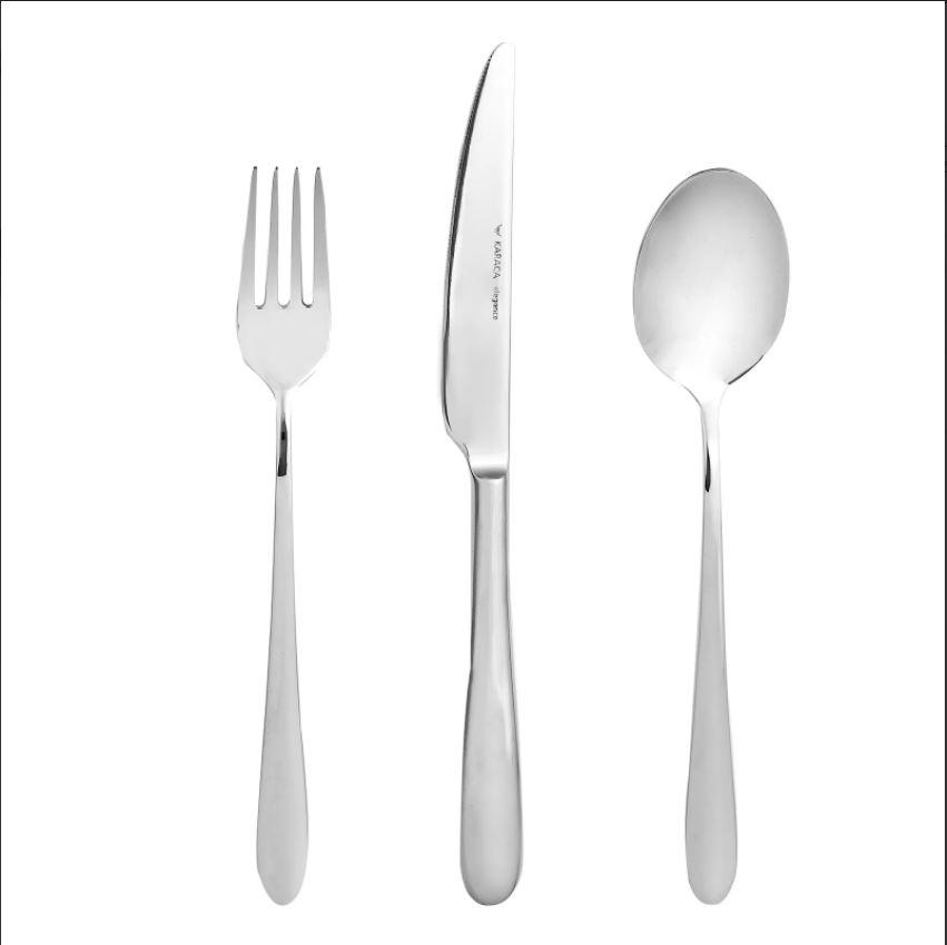 Karaca Yeniköy özenle hazırladığınız yemek masalarını şıklığı ile daha güzel bir hale getirir. 6 kişilik çatal kaşık bıçak takımı paslanmaz çelikten üretilmiş olup, bu özelliği ile de kalitesini ortaya koymaktadır. Klasik ya da modern tasarıma sahip her türlü yemek takımı ile uyum içinde kullana bilirsiniz. Özel olarak tasarlanmış bıçaklar porselen tabak yüzeyine zarar vermez.