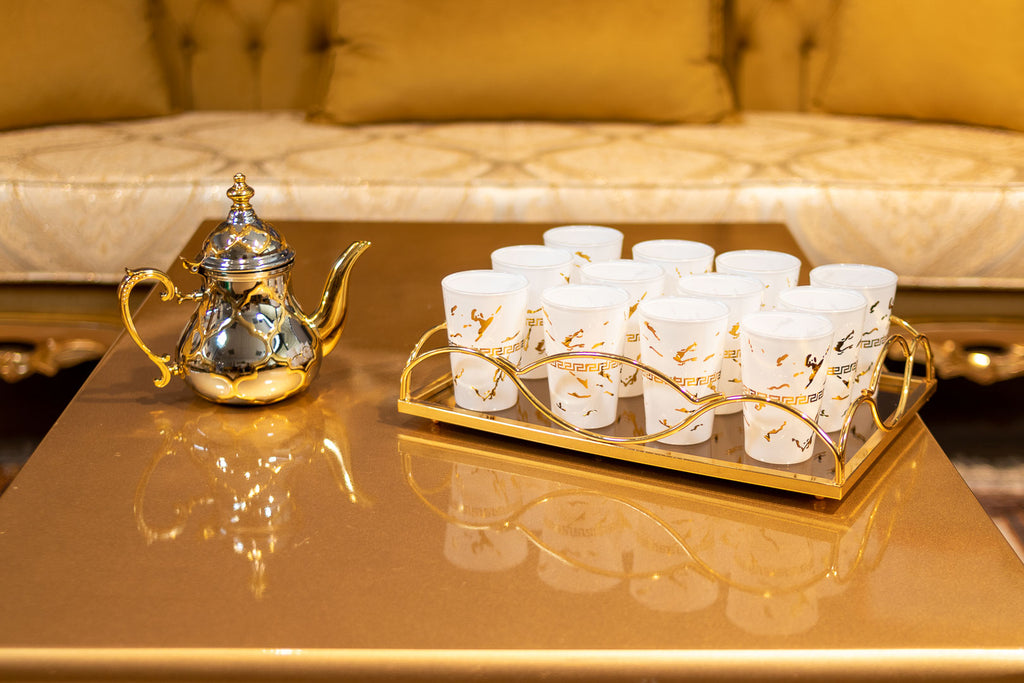 12'li beyaz ve ince altın yaldızlı bardak seti