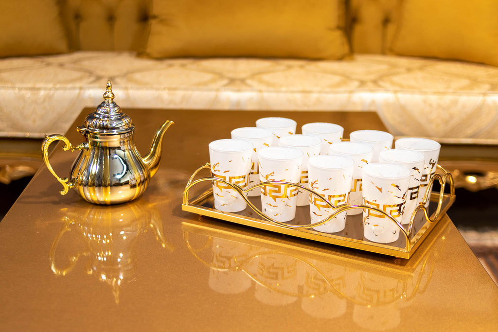 12'li beyaz ve kalın altın yaldızlı bardak seti