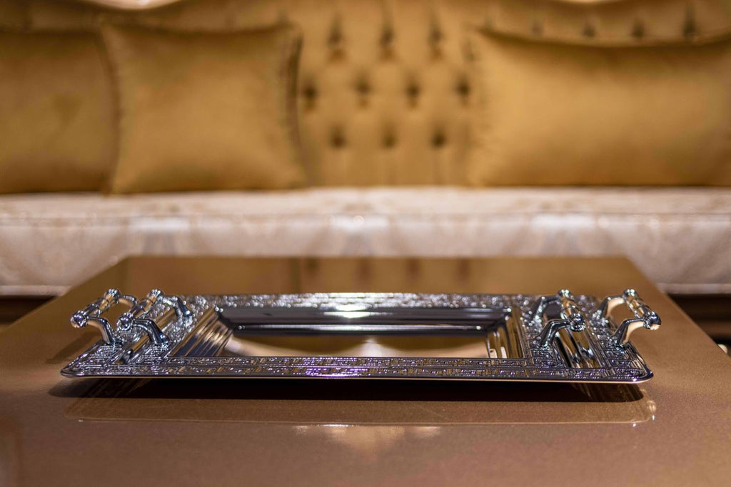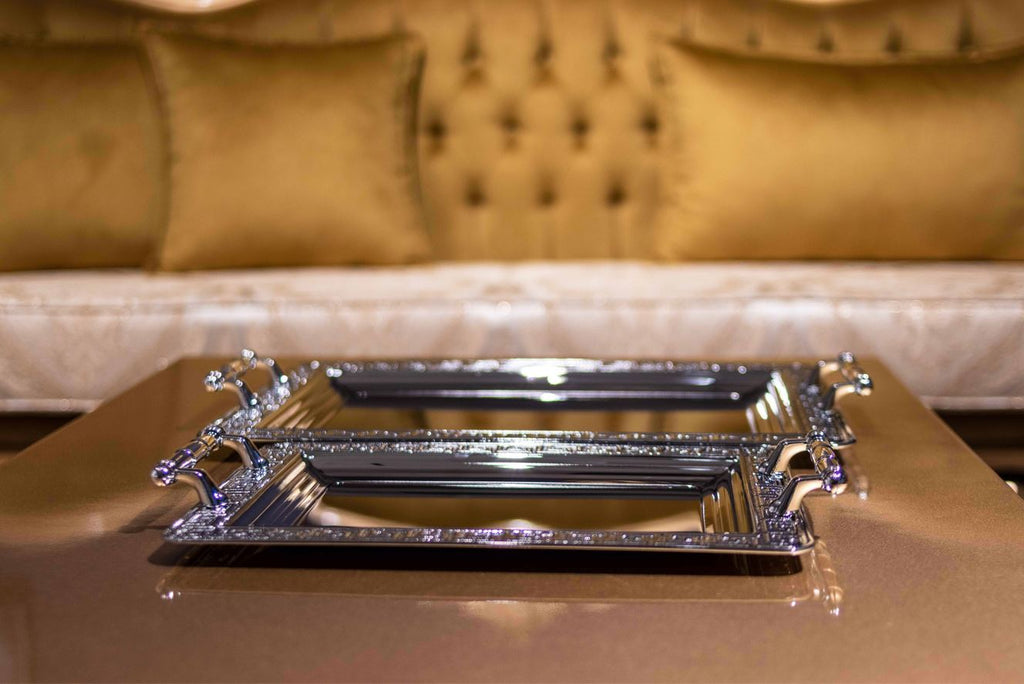 Dikdörtgen 2'li set gümüş servis tepsi