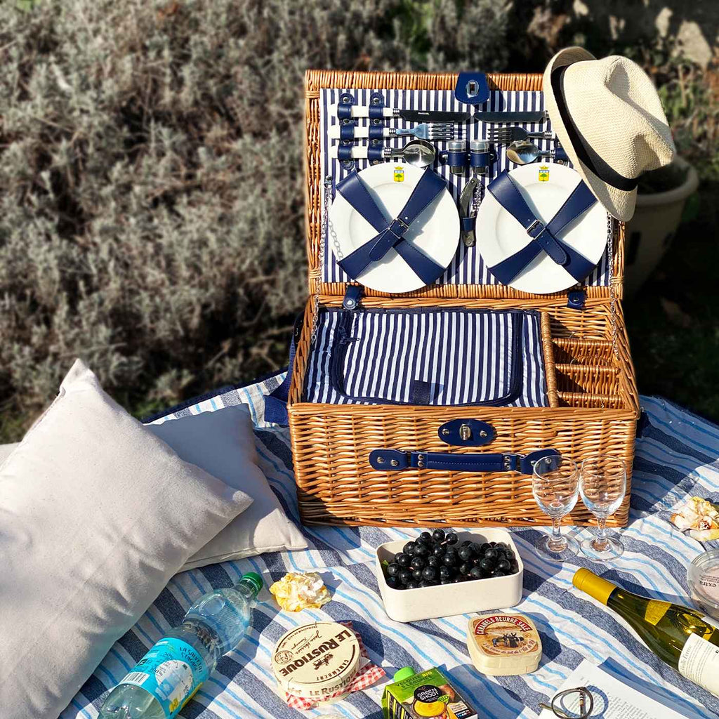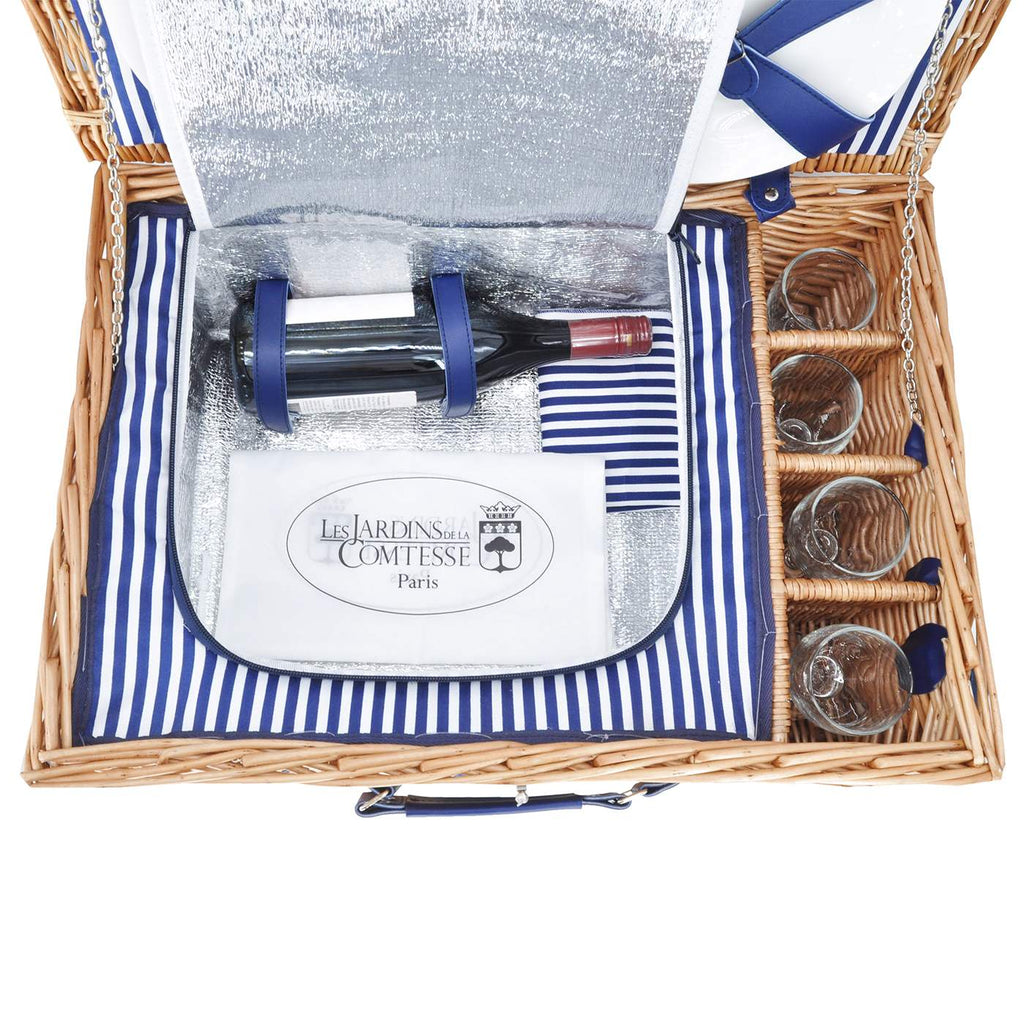 Piknik sepeti 4 kişilik doğal hasır - "Fontainebleau"