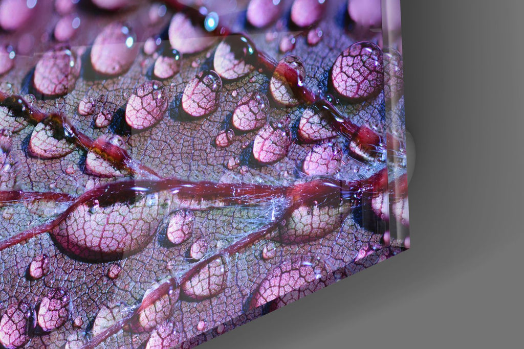Cömertçe zarif guttation, su damlaları bu çağdaş görünümlü cam çiçek baskısında sofistike bir görüntü oluşturuyor.