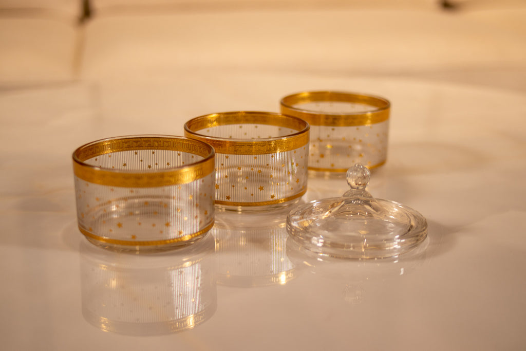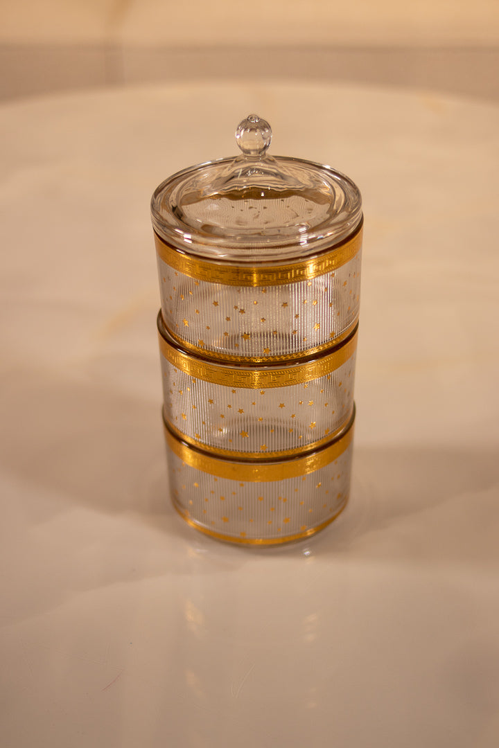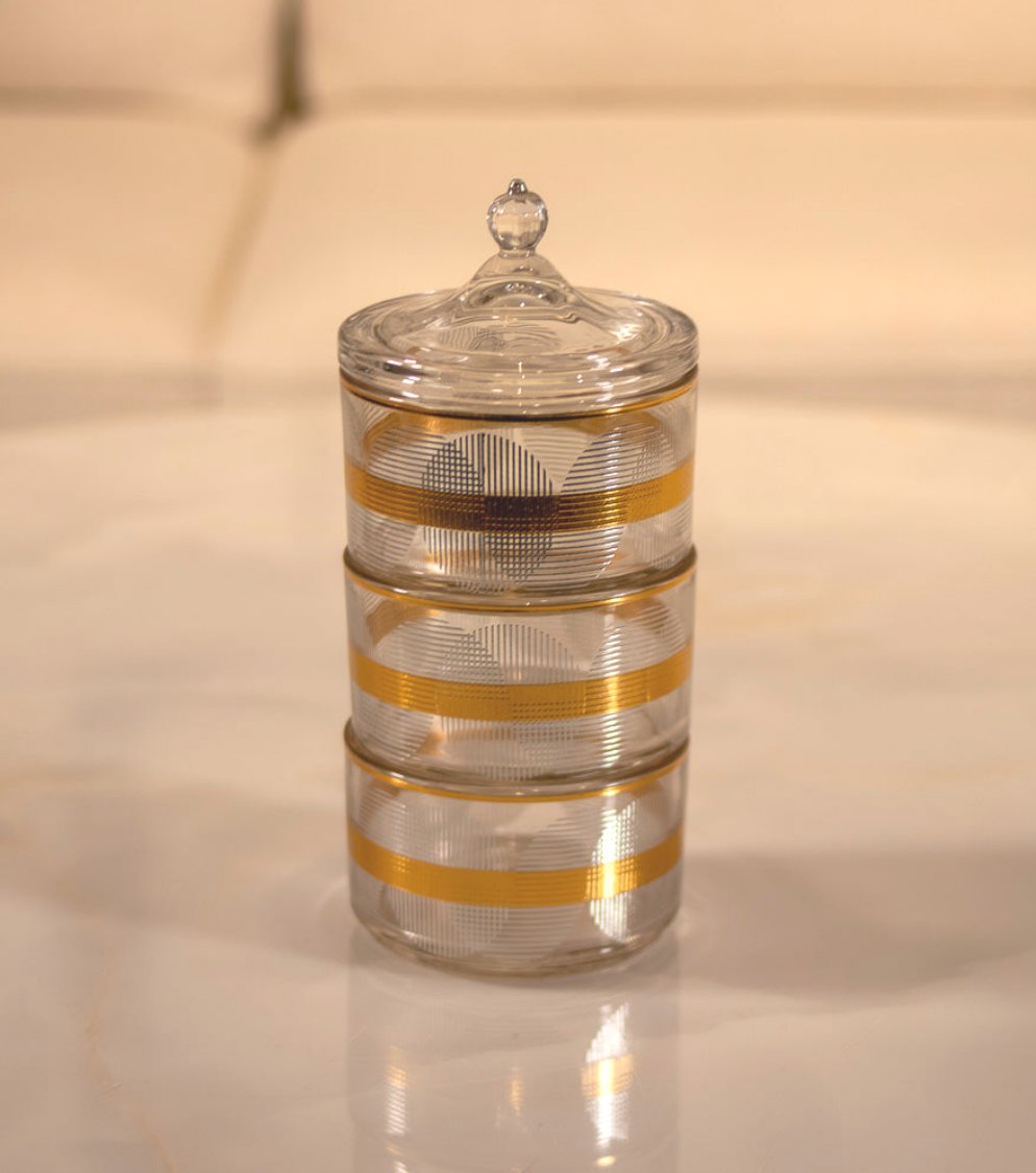 TREND HOME COLLECTION 3 Katlı kapaklı cam şeker/ kurabiye kutusu gold