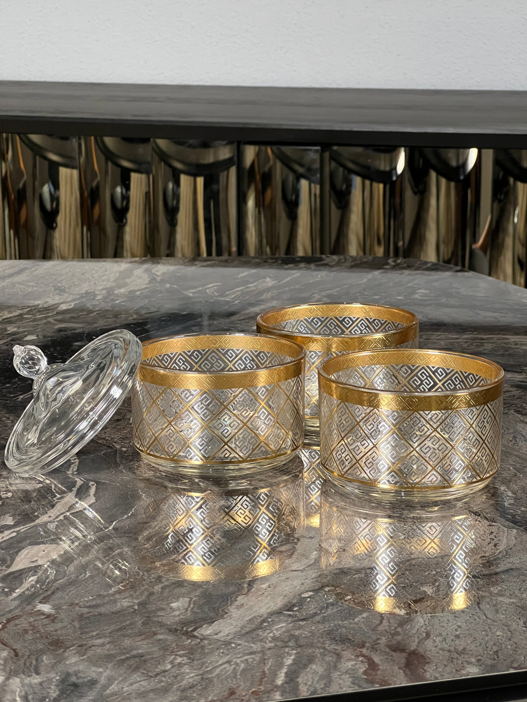 TREND HOME COLLECTION VERSAS 3 Katlı kapaklı cam şeker/ kurabiye kutusu gold