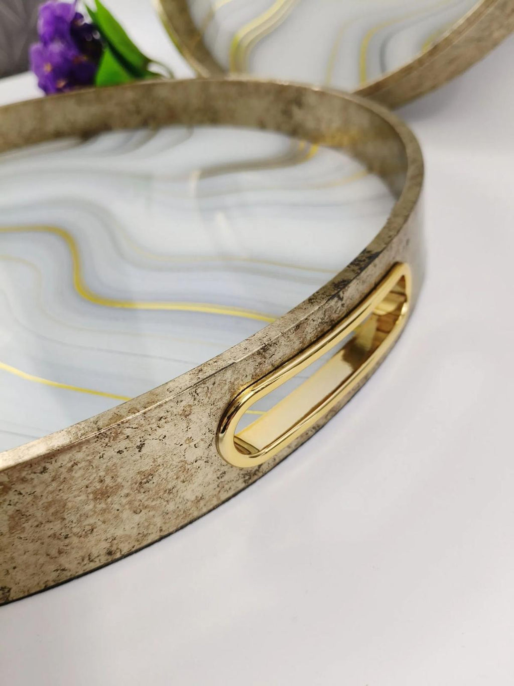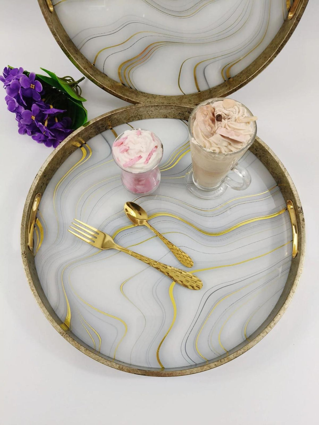 TREND HOME 2'li beyaz ve altın tepsi seti 40 ve 35 cm